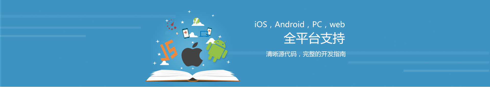 Android、iOS、PC、web全平台支持 简单引入即可集成文本、音视频、网络会议、屏幕共享到web和应用程序中 清晰的源代码,完整全面的开发文档